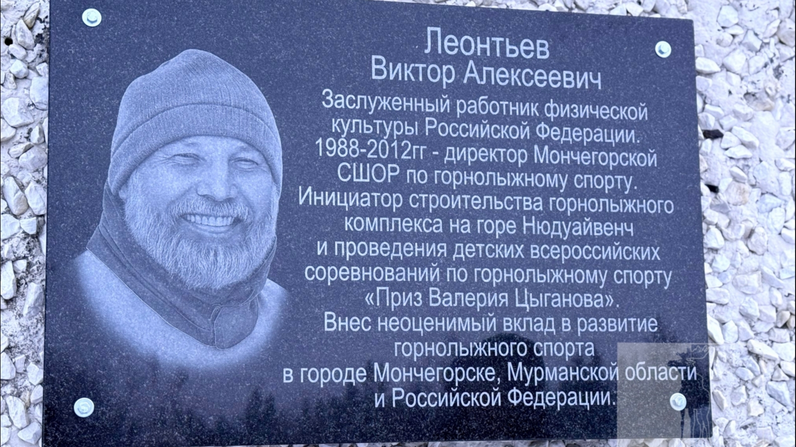 Мемориальную доску имени Леонтьева Виктора Алексеевича открыли на территории Мончегорской спортивной школы по горнолыжному спорту у Северного склона горы Нюдуайвенч.