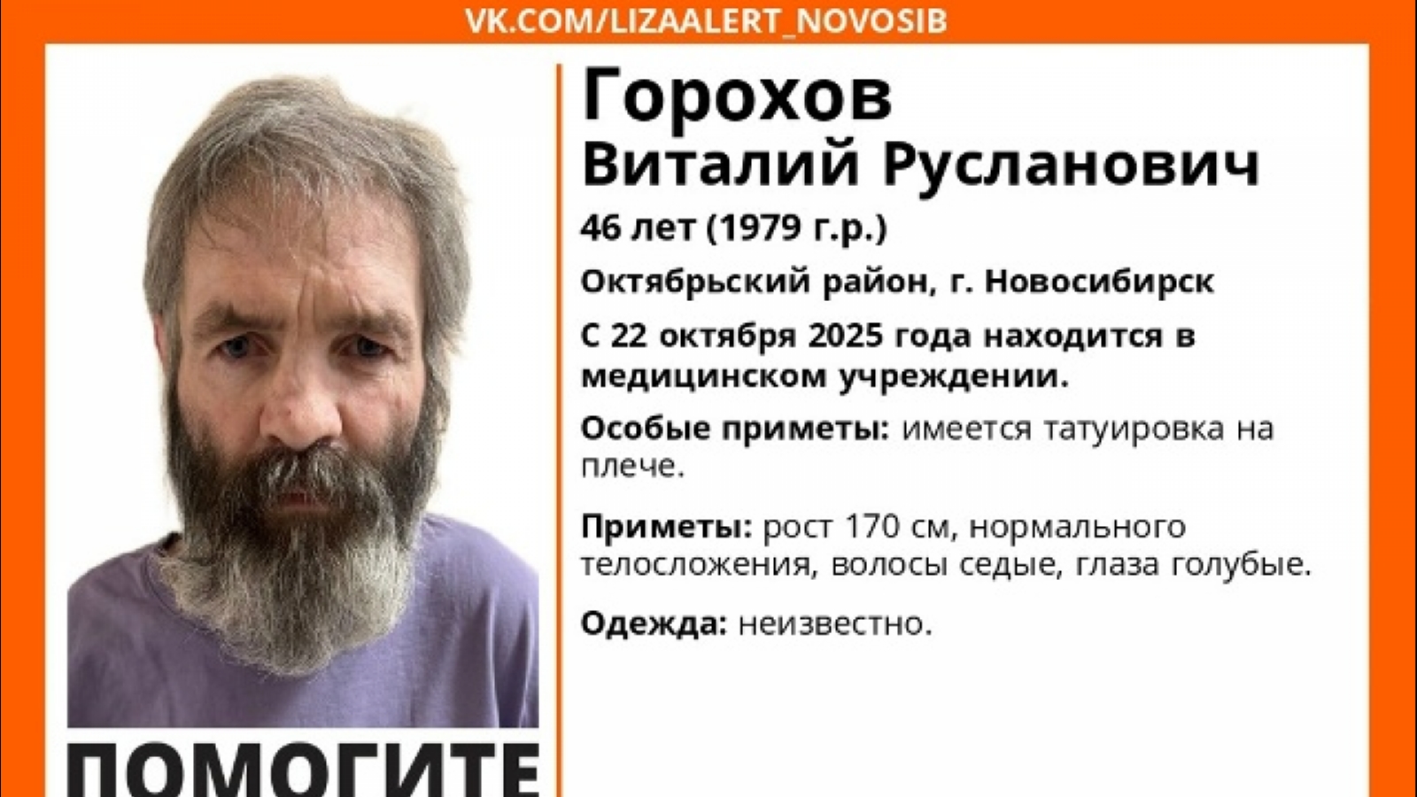 Поисковый отряд «Лиза Алерт» ищет родственников 46-летнего Виталия Горохова, уроженца Новосибирска.