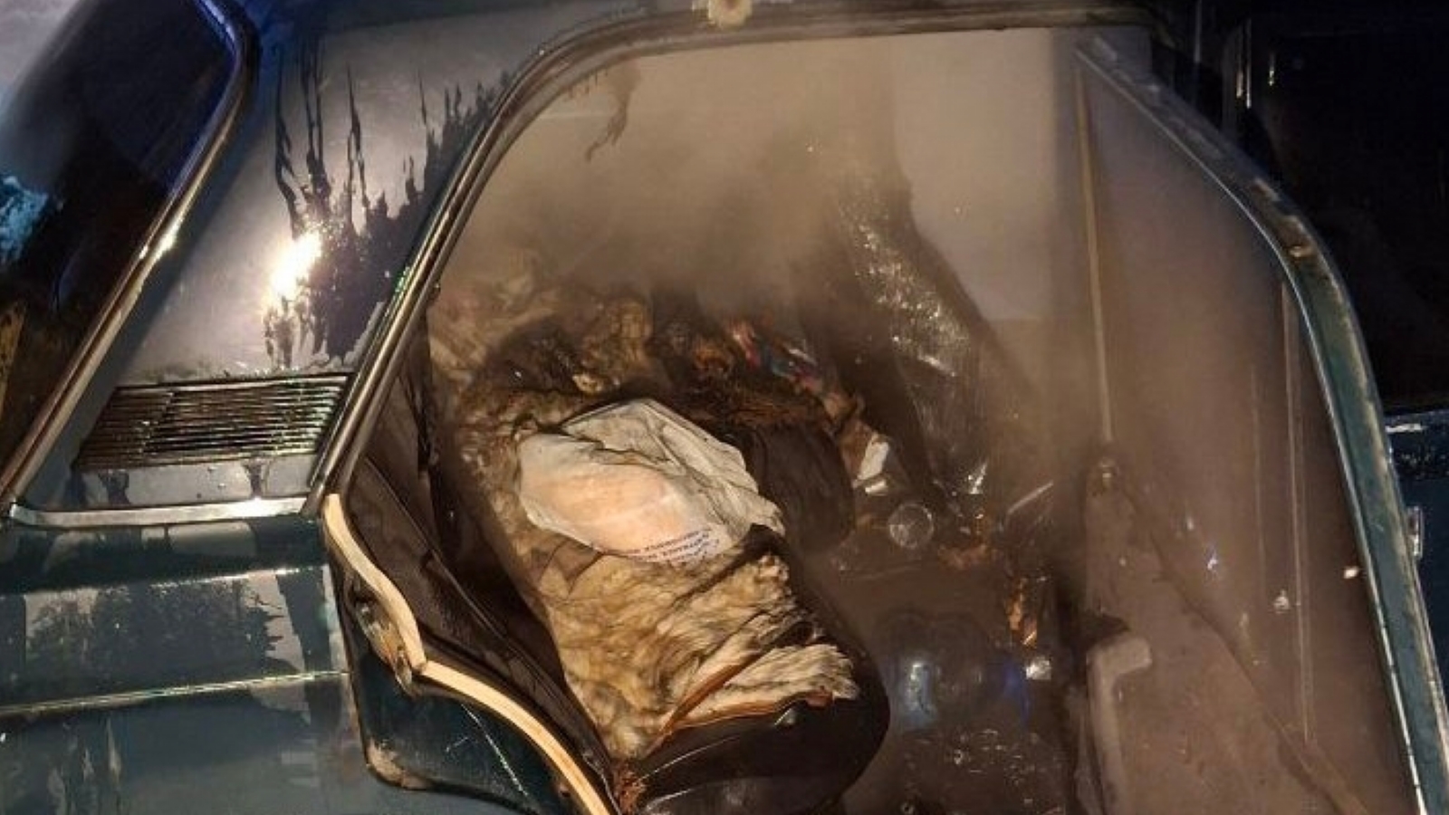 В 22.37 возгорание, в результате которого обгорел салон внутри автомобиля и нарушена целостность лобового стекла, полностью ликвидировано.