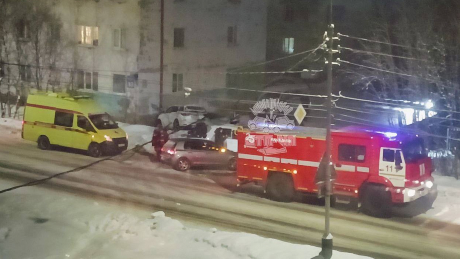 В Мурманске на улице Александра Невского столкнулись три машины. Одна из них врезалась в дом.