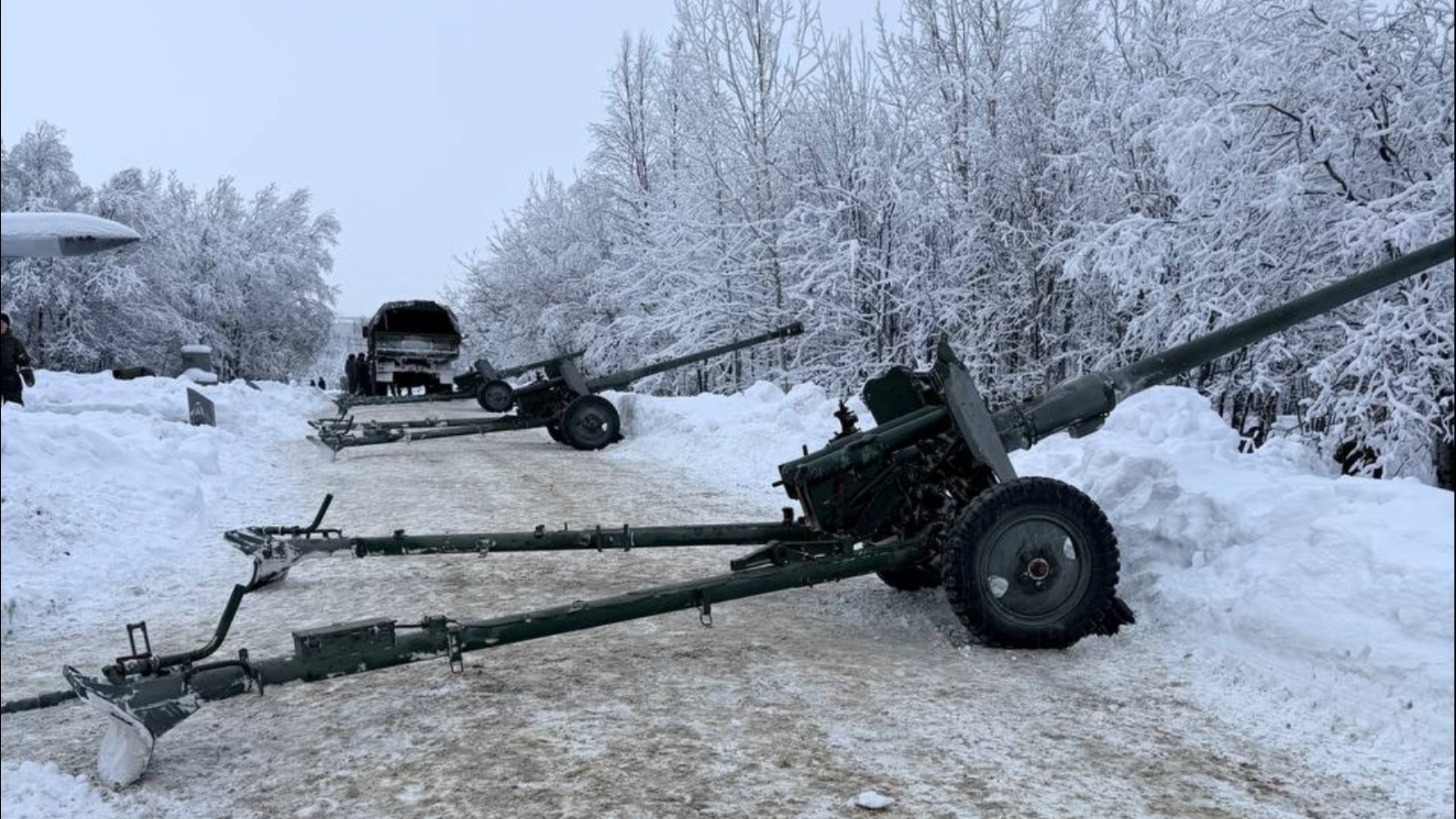 Зенитные орудия установлены на территории мемориального комплекса в честь воинов 1-го корпуса ПВО, которые защищались Мурманск в годы Великой Отечественной.