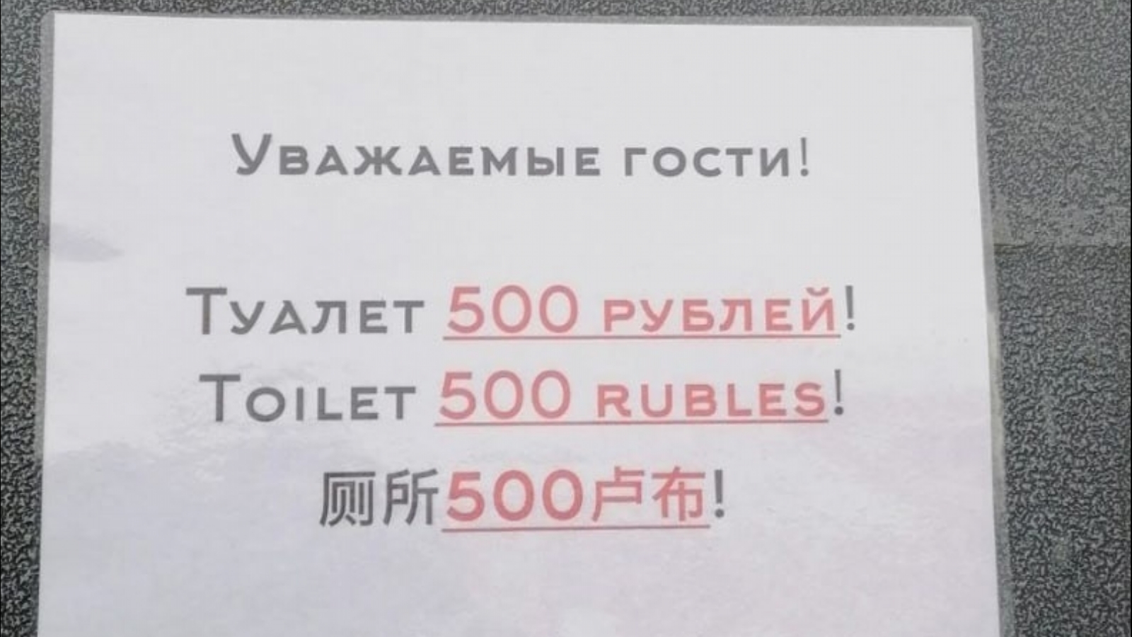 500 рублей - именно столько придется отдать за посещение уборной. Фотка прайса вызвала шквал критики в соцсетях.