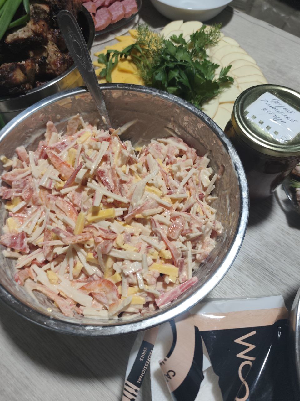 «Послушали речь президента и сели за стол. А на столе салат «Красное море» (его начинка - крабовые палочки и помидоры – ред.), оливье, сельдь под шубой, шашлыки, отварной картофель. И три вида бутербродов: со шпротами, с красной икрой, с семгой», - делится воспоминаниями северянин.