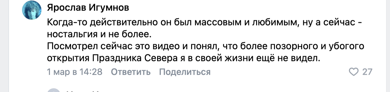 «Для своих»: Мурманчане раскритиковали открытие Праздника Севера