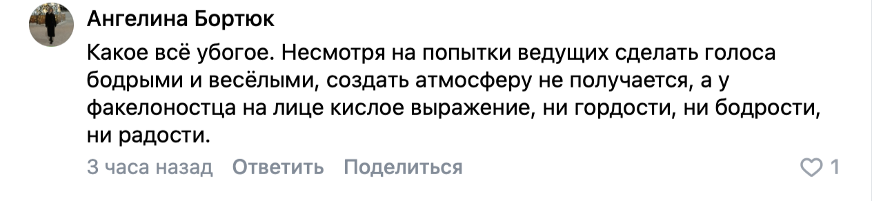 В соцсетях они назвали открытие «праздником для своих» из-за «сжатого» масштаба. Для сравнения, в прошлом году церемония была организована на центральном стадионе.