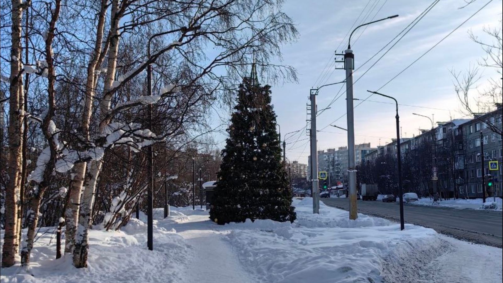 Жители Мурманска интересуются, когда на Героев Рыбачьего уберут новогоднюю ёлку.