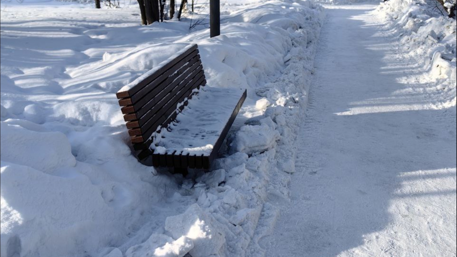 Скамейки в сквере Мурманска забаррикадировали снегом