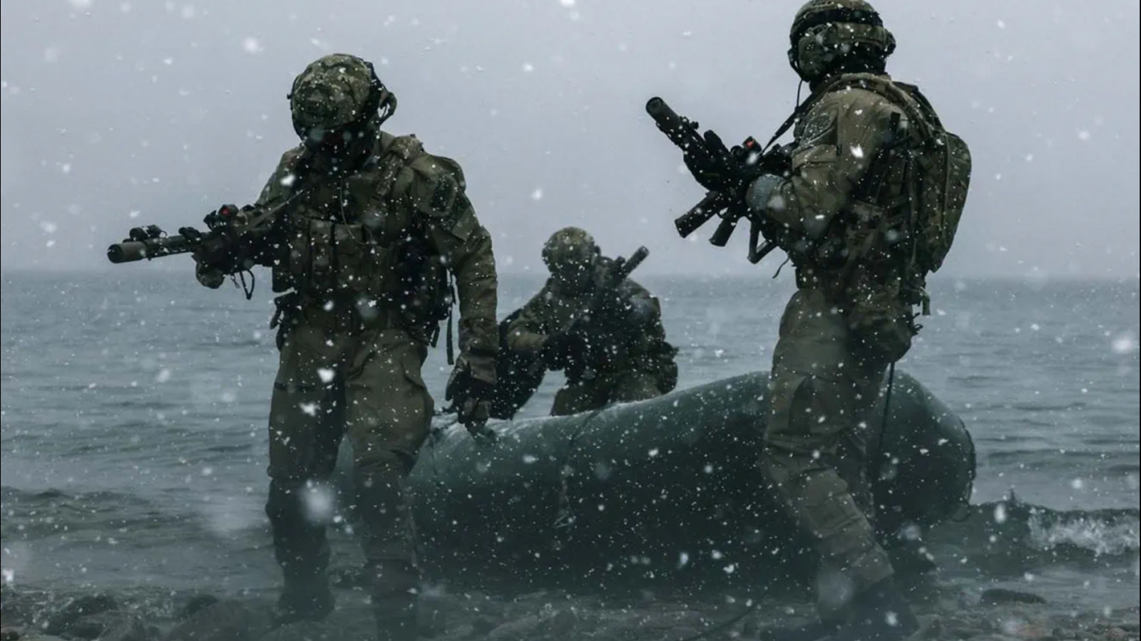 Британские морпехи десантировались в ледяную воду, что «повышает устойчивость к холоду и укрепляет психологическую устойчивость, позволяя преодолевать шок от холода, и концентрироваться на выполнении задания», сообщил командир отряда оперативного реагирования.