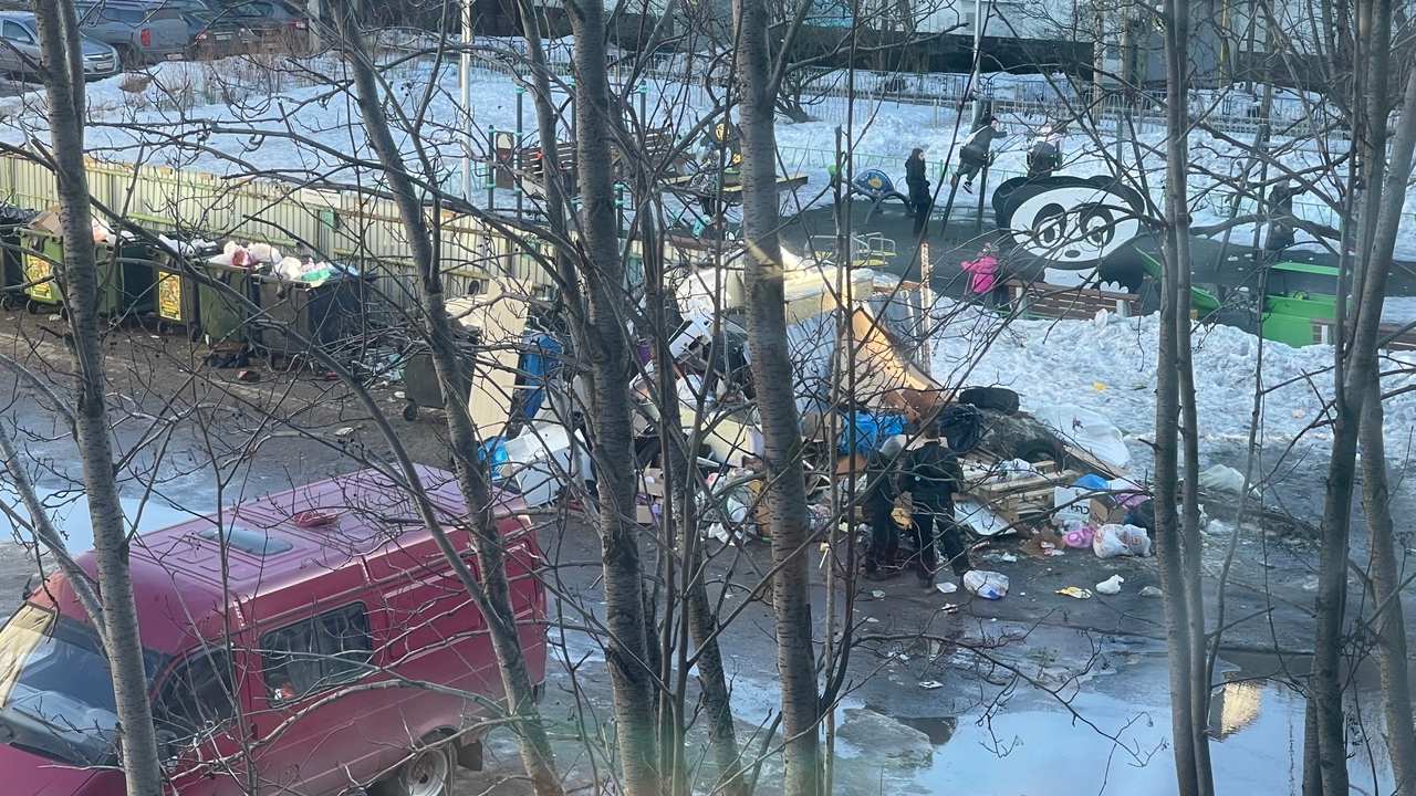 Площадка для крупногабарита уже какое-то время повреждена, самих отходов накопилось изрядно.
