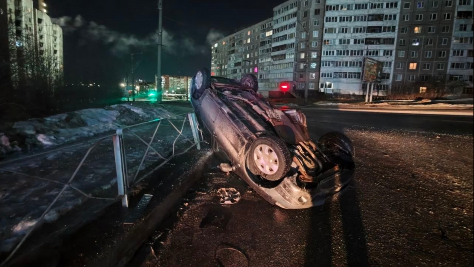 По предварительной информации, 22 марта в 01.40 на улице Шмидта в Мурманске водитель 1987 года рождения на Renault Logan не справилась с управлением.