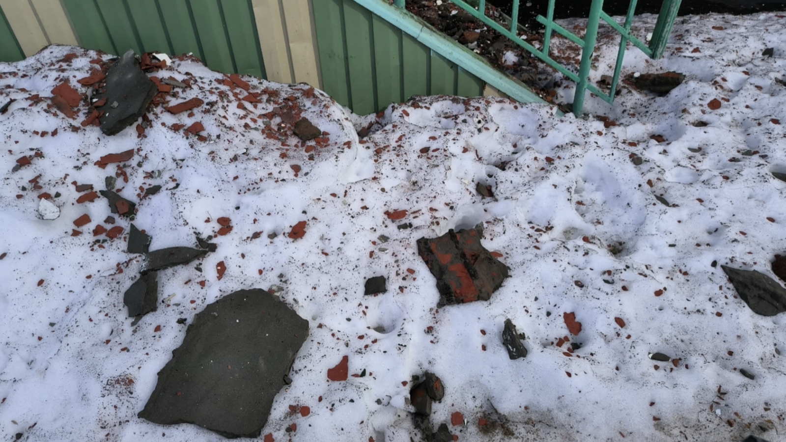 В социальных сетях они опубликовали фото, как на придомовой территории «красуются» куски кирпичной кладки