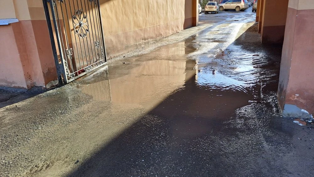 Двор на улице Софьи Перовской, 8 . В арке – воды по щиколотку.
