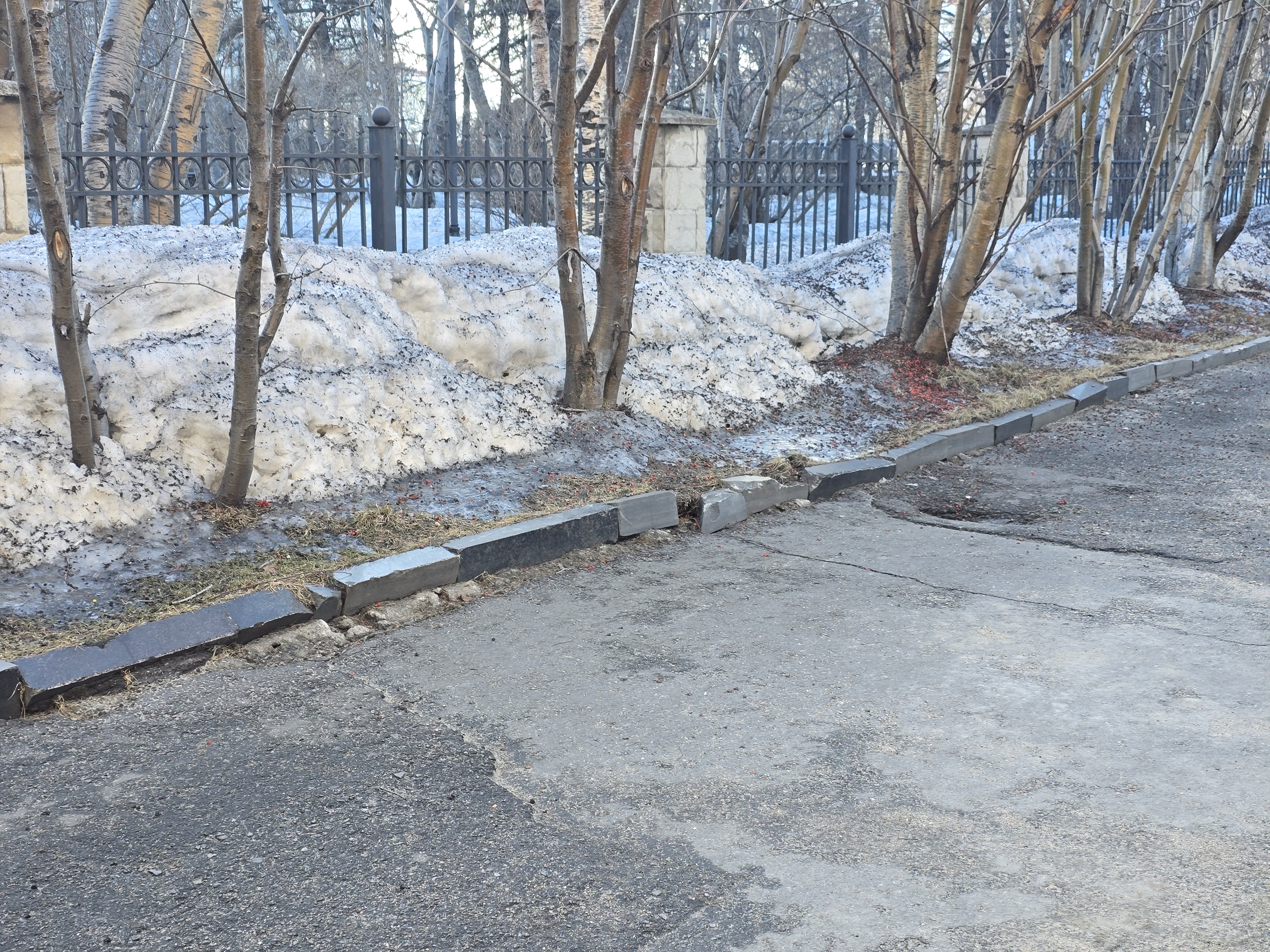 Также печально выглядит обрамление клумбы справа от входа и бордюры. Их, судя по состоянию, делали из остатков материала косорукие мастера.