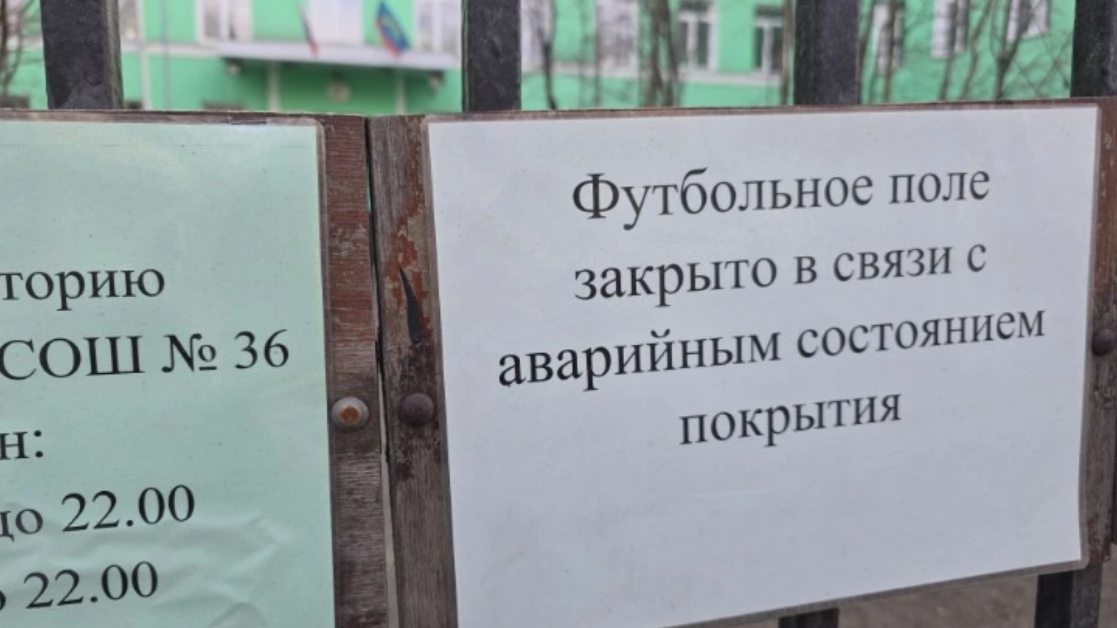 Футбольное поле мурманской школы находится в аварийном состоянии