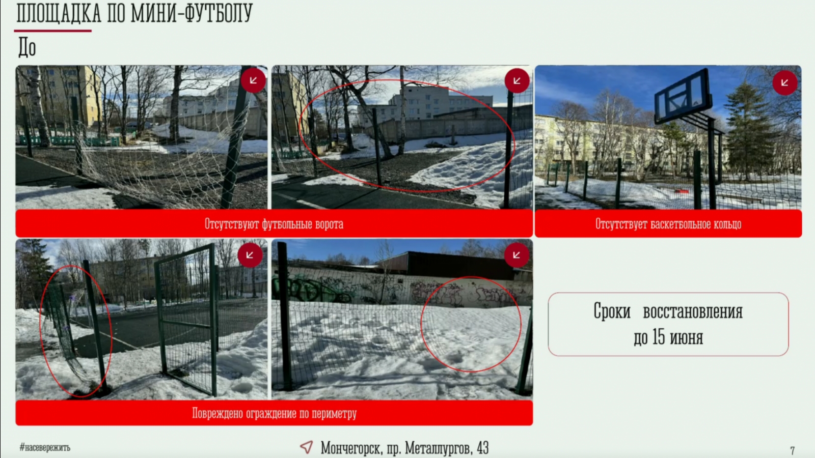 В Мончегорске изуродованную вандалами площадку по мини-футболу на проспекте Металлургов, 43 будут восстанавливать до середины июня.