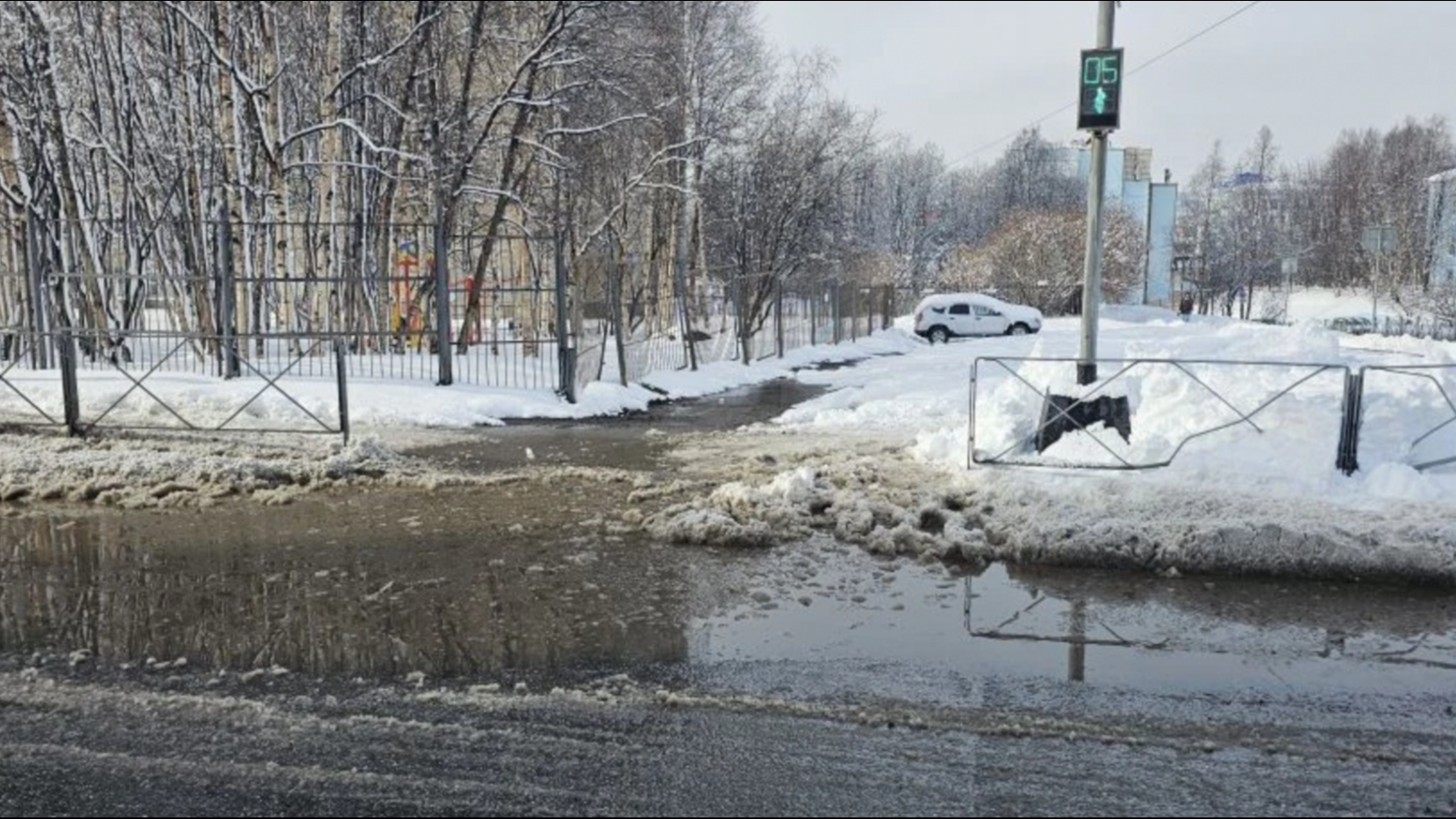 На пешеходном переходе стоит вода глубиной, как минимум, по щиколодку.