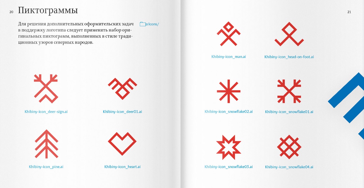 В знаке читаются несколько символов: голова оленя, буква Х, снежинка, силуэт гор и чум, - пояснил дизайнер на специальной странице, презентующей новый логотип для курорта в Мурманской области.