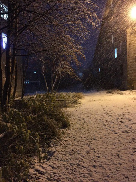 По сообщениям горожан, первые заряды снега подступили к Мурманску около 21.00. К Заполярному осадки добрались ближе к 23.00.